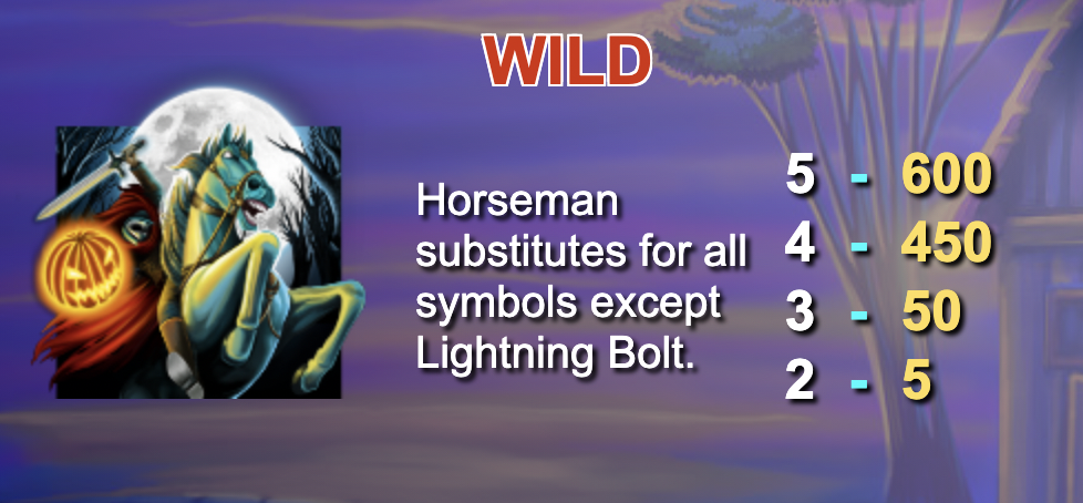 The wild is represented by the Headless Horseman and can be worth a lot if you land 5 of a kind.
